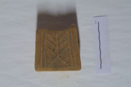 peso da telaio troncopiramidale, con base rettangolare, con faccia anteriore decorata da motivo geometrico costituito da una X sormontata da un motivo a spina di pesce