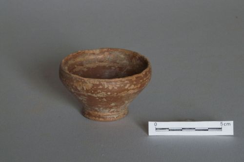 orlo distinto da una solcatura e separato dalla parete mediante una seconda solcatura, parete arrotondata, alto piede con profilo modanato
