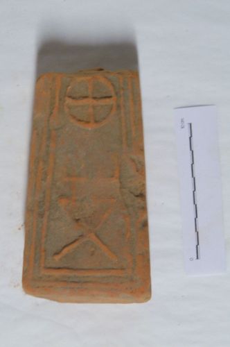 peso da telaio troncopiramidale, con base rettangolare, con faccia anteriore decorata da motivo geometrico costituito da una X sormontata da un disegno non capito e da un cerchio con croce centrale, in una doppia cornice a rilievo