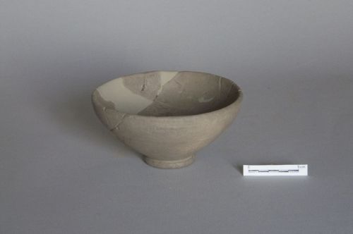 orlo indistinto a margine arrotondato, parete troncoconica leggermente arrotondata, piede ad anello; impasto grigio piuttosto depurato