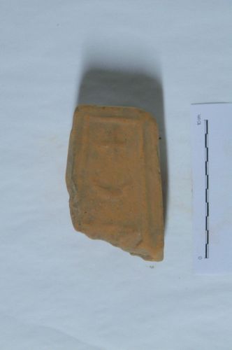 peso da telaio troncopiramidale, con foro pervio sulla sommità, con faccia anteriore decorata da motivo geometrico non ben leggibile, costituito da cerchi sovrapposti riempiti da croci, il tutto in una cornice a rilievo
