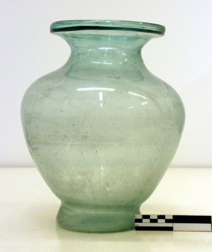 Olla con orlo estroflesso, labbro ispessito e piegato verticalmente per alloggiare il coperchio, basso collo troncoconico a profilo convesso, corpo ovoidale con spalla pronunciata, piede troncoconico ricavato dalla parete, cavo all'interno.
