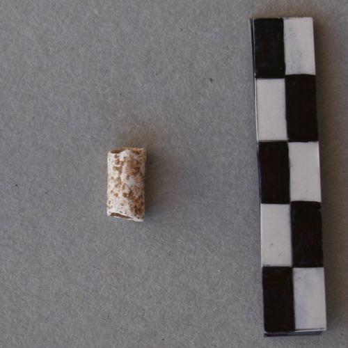 vago in conchiglia (dentalium), di forma tubolare e superficie liscia.