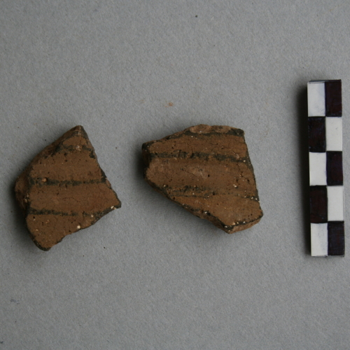 2 frammenti di parete con decorazione a cordoni paralleli orizzontali.