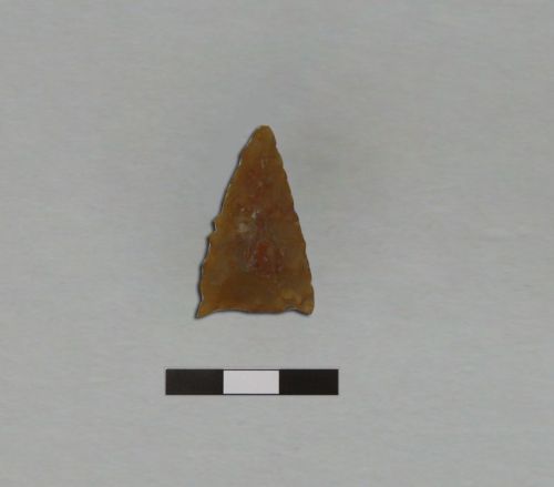 punta di freccia a ritocco piatto bifacciale, a base semplice rettilinea