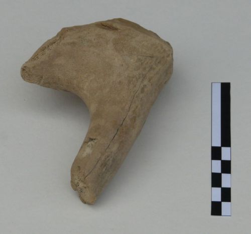 manufatto in corno di grandi dimensioni, con due parti dell'asta e forato alla base, forse interpretabile come zappa