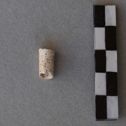 Vago in conchiglia(dentalium), di forma tubolare e superficie liscia.