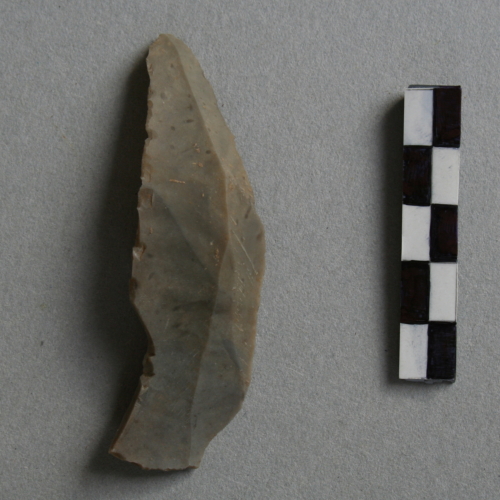 Lama raschiatoio marginale a ritocco semplice parziale diretto parte distale margine destro e sinistro.