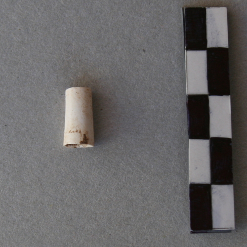 Vago in conchiglia(dentalium), di forma tubolare a superficie liscia.