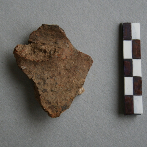 1 frammento di parete ed orlo di indeterminato, probabilmente un olla, labbro appena estroflesso, attacco di presa, indeterminabile, poco sotto l'orlo.