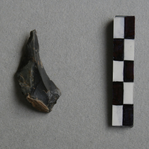 Punta a spalla a ritocco misto, semplice diretto margine sinistro, piatto inverso margine destro, su scheggia con tracce di cortice sul tallone.