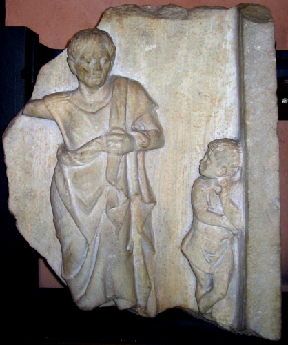 La fattura del rilievo è piuttosto accurata, come indica la lavorazione del panneggio. Non si sa quando il pezzo entrò a far parte della collezione Silvestri di Rovigo, ma di sicuro nel periodo compreso tra il 1711 (anno di pubblicazione del "Giuvenale e Persio" di Camillo Silvestri) e il 1741, anno il cui la raccolta silvestriana giunge in parte a Scipione Maffei.