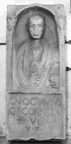 Questa stele rappresenta nel suo apparato relativamente modesto, uno dei pochi esempi di monumento funerario dallItalia settentrionale, fatto allestire per se stesso da un appartenente alla classe superiore (quattuorvir). Per ulteriori ragguagli si rimanda alla bibliografia.