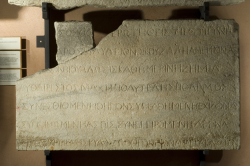 Lastra rettangolare posta orizzontalmente con iscrizione sulla fronte.
