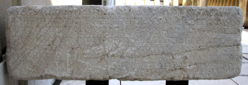 Le lettere del testo sono accurate e regolari, con tratti sottili e vistosi apici; si noti lalpha a sbarra spezzata. Uno spazio bianco è lasciato alla l. 13 prima di Dorothea; la l. 10 è incisa in lettere più piccole, forse perché fu inizialmente dimenticata e aggiunta in un seconda momento. La dedica è stata fatta dallateniese Archeolaos, lo stesso personaggio che compare in una lista di sottoscrittori del 108/107 a.C., in occasione del caneforato della figlia Dorothea, che allora ricoprì per la prima volta nel servizio di Iside questo ufficio sacerdotale, a noi noto a partire dal 117/116 a.C. Più tardi, nel 106/105 a.C:, Dorothea fu ancora canefora, ma nel santuario delle divinità siriache. La datazione dellepigrafe è assicurata dal ricordo del sacerdote di Se rapide, inviato annualmente da Atene. Lo zakoros è nominato per la prima volta in questa iscrizione e in unaltra contemporanea; si trattava di una carica religiosa annuale, per la quale era ammessa literazione, ricoperta spesso da stranieri o personaggi di rango secondario. Di particolare interesse è il ricordo degli artefici della statua di Iside, oggi perduta. Si tratta di tre fratelli ateniesi, dei quali non è nota alcuna altra opera; uno dei tre, Adamas, fu anche autore di una dedica a proprio nome a Delo. Il Toynbee, peraltro, ha osservato come vi fossero numerosi artisti stranieri a Delo, spesso raggruppati in famiglie o dinastie, attratti dalla favorevole situazione politica ed economica creatasi per loro durante il periodo della dominazione ateniese sull'isola.