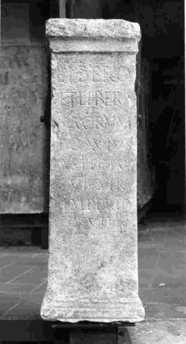La dedica sacra è posta in onore di Libero e Libera, antiche divinità italiche della fecondità. Ragioni paleografiche e tipologia del monumento, inducono a proporre per quest'ara una datazione compresa tra i secc. I e II d.C.