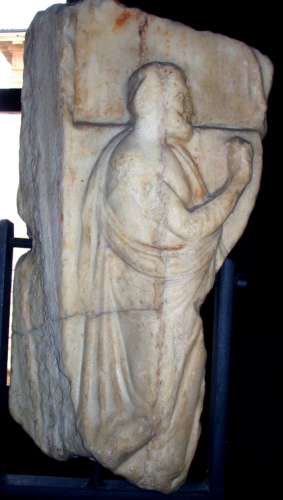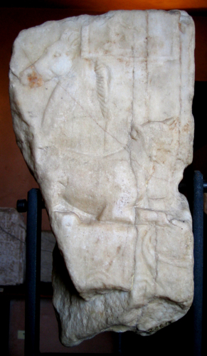 Il rilievo è il frammento laterale sinistro di una lastra scolpita su due facce.