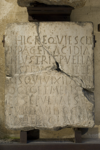 La formula con la quale questa iscrizione si apre induce a pensare ad un contesto cristiano. Problemi interpretativi all'atto dell'autopsia pone la seconda parola in r. 9, per la quale in trascrizione si è proposto PATER, con le due lettere iniziali unite in nesso. Se la lettura fosse corretta, la P e la C che seguono in sigla, potrebbero essere integrate come ugualmente proposto in trascrizione, P(ONENDUM) C(URAVIT). Seguirebbe poi la citazione della coppia consolare, della quale sopravvive attualmente solo la prima parte del primo nome, LAMPA-. Se tale ipotesi fosse giusta, il nome in questione e quello dell'altro console andrebbero naturalmente integrati in ablativo (LAMPA / [DIO ET ORESTE CONSULIBUS]), e non in genitivo, come invece prospettato nel Corpus, genitivo lì giustificato dallo scioglimento della sigla P C come P(OST) C(ONSULATUM) L(AMPADI) E[T O]RES[TIS]. Tale proposta sembra però poco convincente, sia perchè il riscontro autoptico lascia pochi dubbi circa la lettura della seconda parola in r. 9 come pater, sia perchè, anche ammettendo uno scioglimento come iter(um), secondo quanto indicato dal Corpus, non si riesce ad attribuire correttamente a tale avverbio il significato di "due anni (dopo)". Di conseguenza si propone per questa stele una datazione proprio all'anno del consolato di Lampadio e Oreste (530 d.C.) e non a due anni più tardi.