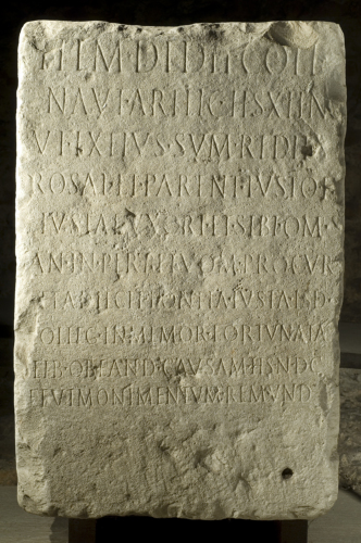 Si propone per il cippo una datazione compresa tra la fine dell'età di Marco Aurelio (quando venne riconosciuto ai collegi il diritto di ricevere legati) e l'inizio del sec. III d.C., per ragioni paleografiche, connesse con l'abitudine epigrafica di sostituire la sigla HS con la sigla SS. Nel Corpus si considera questa iscrizione proveniente da Peschiera, per il riferimento, nel testo, al collegio Naut(arum) Arilic(ensium), posto in relazione appunto con Arilica (Peschiera). Il priorato di S. Colombano, menzionato ugualmente nel Corpus, e oggi scomparso, doveva tuttavia sorgere presso Bardolino. Accogliendo questa informazione, e tenendo comunque presente la possibilità di una "migrazione" della pietra per reimpiego, è interessante osservare una testimonianza relativa a questo collegio in una zona diversa dalla sede propria di Arilica, forse attraverso un sistema di collegamenti via lago dei quali potevano occuparsi proprio i membri del collegio stesso. Si rimanda alla bibliografia per ulteriori ragguagli.