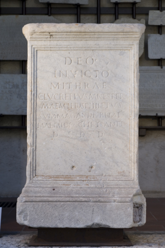 Mitra, divinità di origine babilonese, nel mondo ellenistico e romano fu adorato nelle religioni misteriche dal I secolo a.C. al V secolo d.C., combinando in culto sincretico il Mithra persiano con altre divinità persiane e probabilmente anatoliche. Nella cultura ellenistica Mitra era identificato con Apollo - Helios. Durante il II secolo a.C., probabilmente a Pergamo, scultori ellenistici trasformarono la figura di Mitra/Helios in un Mithras iconico, la divinità centrale di una nuova religione sincretica, il Mitraismo. Comunque questo nuovo culto non si diffuse nell?entroterra greco, mentre prese piede a Roma all'incirca nel I secolo a.C., propagandosi in tutto l'Impero romano: fu accolto dagli imperatori come una religione ufficiale.