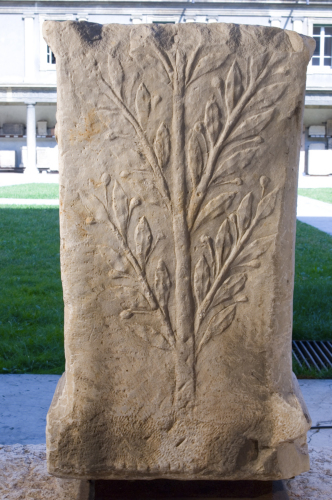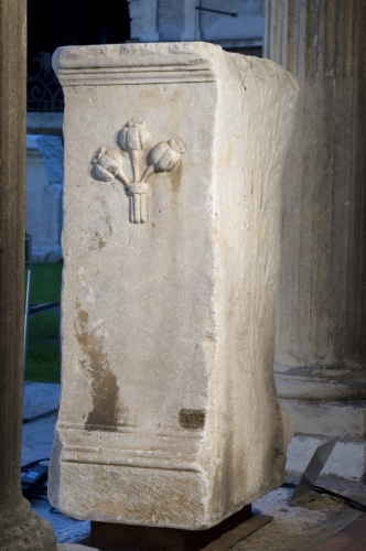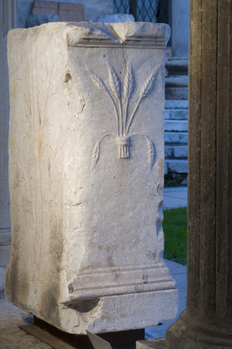 I due "summagistri" committenti di questa ara probabilmente fecero erigere un rilievo con la rappresentazione della divinità.
