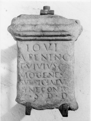 La piccola ara parallelepipeda di marmo presenta il coronamento, aggettante e modanato con cornice a gola e tondino; sulla fronte vi è l'iscrizione, sul fianco sinistro una patera, sul fianco destro una brocca. I segni di interpunzione sono puntiformi.