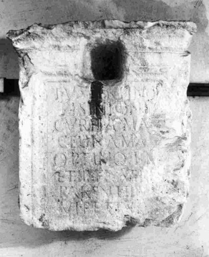 L'apparato decorativo, che presenta eroti in rilievo sulle due fiancate, si riconduce ad una tipologia largamente attestata in ambito funerario, in modo particolare proprio nel territorio veronese. Il genio funebre con face capovolta, rappresenta chiaramente la vita che si spegne e l'ingresso nel mondo buio dell'oltretomba. Al contrario, l'erote con fiaccola levata, assume valore escatologico, suggerendo l'idea della vita che lotta con la morte e che alla fine riesce vittoriosa, sebbene ancora nel contesto di una religiosità tutta pagana. In quest'arula abbiamo dunque una rappresentazione simmetrica e inversa che richiama la dialettica morte / vita, tenebra / luce, tipica, per esempio, degli orizzonti mitriaci, nei quali appunto ricorre con insistenza il motivo accostato e contrapposto delle fiaccole levate e rovesciate. Il nostro monumento doveva riferirsi ad una sepoltura collettiva, come pare suggerire la dedica posta da persone diverse ad altrettanti destinatari. Sembra interessante segnalare il fatto che il Mommsen metta in relazione l'iscrizione presente su quest'arula con quella riportata in CIL, V, 4028, dove compare la medesima Curfia Marcel(l)ina che pone una dedica mar(ito) optimo b(ene) m(erenti) T(ito) VALUMNO Pisinioni. Il gentilizio del marito defunto cambia, sebbene negli indici del Corpus non compaia menzione del nomen Valumnus. Anche la tipologia del monumento che funge da supporto per la dedica è molto simile in un caso e nell'altro: arule con geni alati che reggono faci levate e rovesciate.