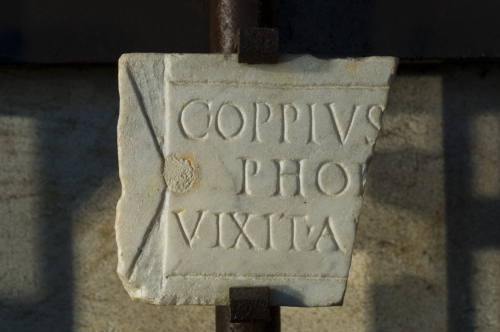 L'integrazione del testo epigrafico è possibile grazie all'edizione del Corpus: il curatore infatti vide l'iscrizione quando essa era ancora quasi del tutto integra.