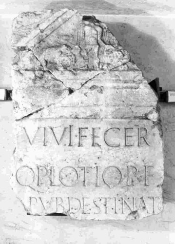 La dedica è posta da alcuni ignoti ancora in vita a Quinto Plotio Destinato, appartenente alla tribù Publilia. Ragioni paleografiche inducono a proporre per la stele una datazione al sec. I d.C.