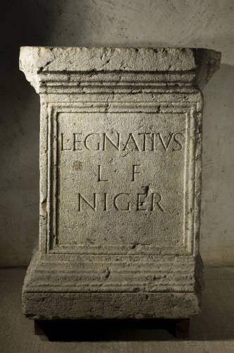L'iscrizione si data al I secolo d.C. sulla base di criteri paleografici. Buonopane ritiene che il monumento appartenga ad una bottega epigrafica operante nella Zona di S. Giorgio di Valpolicella tra la metà del I e la prima metà del II secolo d.C.