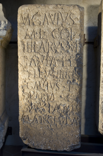 L'iscrizione menziona esponenti di estrazione libertina (genitori) e i figli appartenenti alla gens Gavia, una delle più illustri famiglie di Verona. L'iscrizione si data alla II metà del I secolo d.C. sulla base di criteri paleografici (modulo delle lettere tendenzialmente allungato, lettere apicate, interpunzione e alcuni tratti delle lettere ad andamento curvilineo).