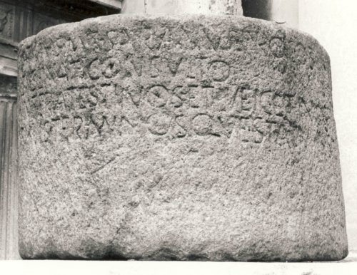 La datazione è fornita dalla menzione del proconsole Sex. Atilius Saranus. La località in cui il cippo è stato rinvenuto dista in misura quasi uguale da Verona, Vicenza ed Este.