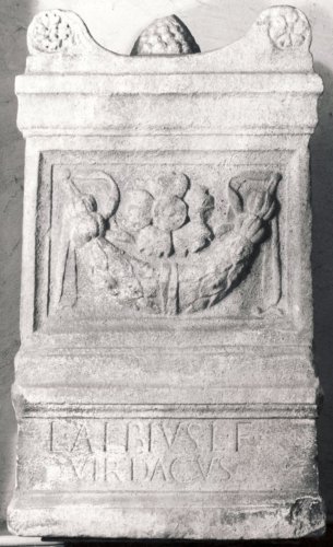 L'iscrizione riporta semplicemente la formula onomastica del titolare della sepoltura. Il cognomen Virdacus, forse di origine celtica, pare privo di altri riscontri nell'Italia settentrionale. Ignoto il luogo di rinvenimento, l'ara sembra ritenersi atestina per la tipologia del monumento. Si data al I secolo d.C. sulla base della paleografia dell'iscrizione e della tipologia del supporto.