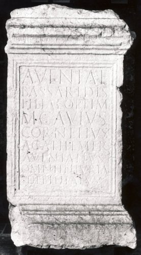 Si tende a datare l'iscrizione alla II metà del II secolo d.C. sulla base del formulario utilizzato caratterizzato da formule complesse quali "omni iniuria debilitatus", "omni sensu vita pietate perfectissima", "splendido equite romano omni honore functo". L'impiego dell'ara in contesto funerario consente di ipotizzare una notevole rilevanza sociale o almeno economica della famiglia della titolare della sepoltura, Avenia Bassaride. Il cognomen grecanico del padre e l'iscrizione a caratteri greci sul retro attestano invece l'origine grecanica sia del padre, dedicatario della sepoltura, che della figlia Avenia Bassaride. Dalla formula onomastica del padre di Avenia, Marcus Gavius Cornelius Agathemerus Avenianus, si comprende trattarsi con buona probabilità di un liberto di origine grecanica che ha voluto mimetizzare la sua originaria condizione servile e che è stato adottato da Marcus Gavius Cornelius, un esponente della gens Gavia, una delle più illustri famiglie del Veronese.