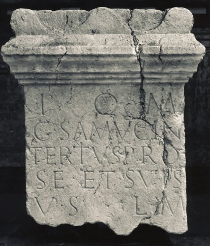 La collocazione cronologica dell'iscrizione si basa sul modulo decisamente quadrato. Nume tutelare del popolo romano, Giove era designato Optimus Maximus per la sua posizione nel pantheon romano (Bassignano, Modonesi)