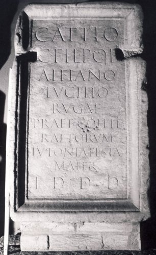 Si tratta di una iscrizione onoraria approntata per l'erezione della statua del personaggio menzionato, C. Attius Alfianus Lucilius Ruga, prefetto della II coorte dei Reti. L'iscrizione si data al II secolo d.C. sulla base dei caratteri paleografici (modulo tendenzialmente allungato) e del confronto con l'iscrizione riportata in CIL V, 3336 (inv. 28222, altro codice bene WLT-004600_WRC-897096).