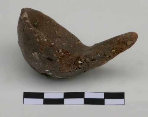 crogiolo a forma di cucchiaio subcircolare a profilo convesso, profondo, manico pieno a breve listello