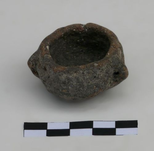 vasetto miniaturistico (giocattolo) con tre bugnette plastiche laterali forate orizzontalmente