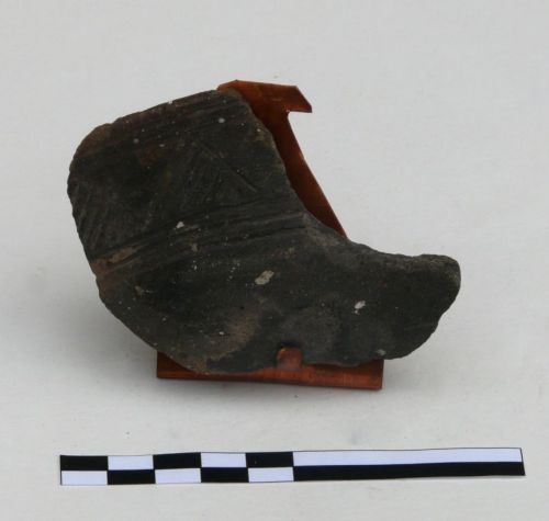 tazza carenata con vasca emisferica e parete superiore rettilinea, decorata a solcature a formare un motivo geometrico a fascia orizzontale