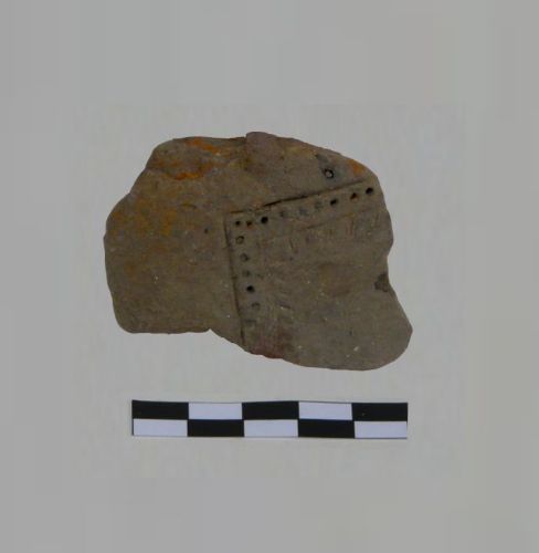 parete con decorazione a linee incise e punti impressi, a formare un motivo angolare