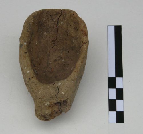 crogiolo a forma di cucchiaio ovale a profilo convesso, profondo, manico pieno