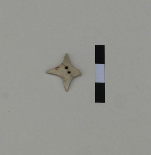 ornamento in madreperla, con due fori in osizione centrale