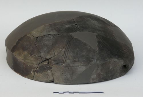 scodellone carenato con orlo diritto, parete superiore diritta, vasca emisferica, fondo ombelicato, due piccole anse canaliculate impostate dall'orlo sulla carena. Decorato sulla vasca da un motivo cruciforme inciso (decorazione tipo Barche di Solferino)