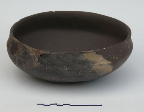 scodellone carenato con orlo diritto, parete superiore concava, vasca emisferica, fondo ombelicato, due piccole anse canaliculate impostate dall'orlo sulla carena. Decorato sulla vasca da un motivo a cerchi incisi contrapposti e affrontati