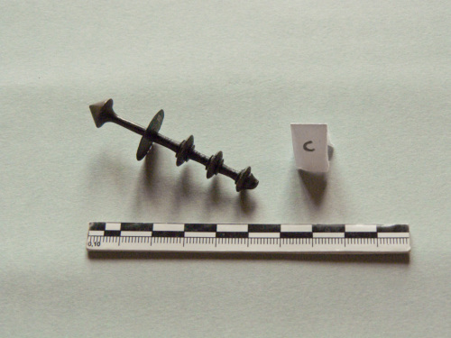 Frammento di spillone con capocchia ad ombrellino e serie di elementi discoidali; privo dell'ago.
