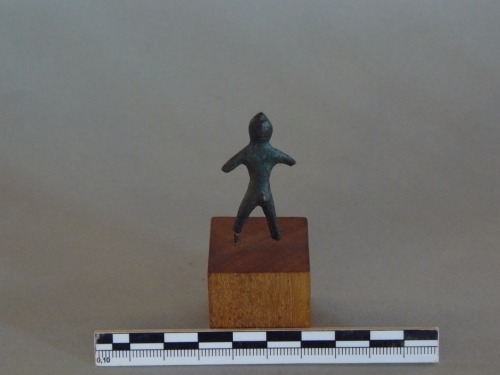 Bronzetto di devoto, la testa ha profilo subcircolare con apice conico, i tratti del volto non sono segnati. Il corpo è trattato in maniera sommaria, le braccio sono allargate, i capezzoli e l'ombelico sono segnati da cerchi, i genitali sono appena accennati e le gambe risultano leggermente divaricate.