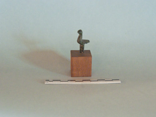 Il bronzetto rappresenta un volatile in forma molto schematica e dritto sulle zampe; il reperto originariamente doveva essere connesso ad un altro elemento in bronzo (probabilmente a forma di gamba umana).