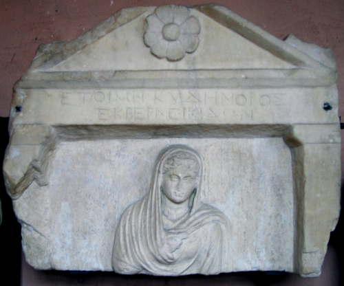 Nel testo, si notino il prolungamento superiore del tratto destro del delta, il rho con una piccola appendice sotto la curva, il my e l'ypsilon con i tratti incurvati, l'epsilon con il tratto orizzontale mediano staccato da quello verticale, infine l'omega rimpicciolito e con grosse appendici triangolari. Benché la forma di alcune lettere sia già diffusa all'inizio dell'età imperiale, altre come il my corsiveggiante riportano all'epoca di Adriano. Il demo della defunta, Berenikidai, testimonia l'origine attica della stele; esso fu creato forse intorno al 224/223 a.C., con l'introduzione in Atene della tribù Ptolemais, intitolata a Tolomeo Emergete, di cui Berenice era sposa.