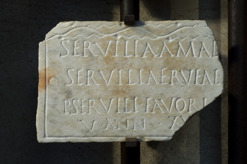 Servilia, il cui cognomen potrebbe essere integrato in Amabilis, doveva essere la liberta o la figlia di Servilia Rufa e di Publius Servilius Favor, questi ultimi verosimilmente colliberti, come indicherebbe l'appartenenza alla medesima gens.