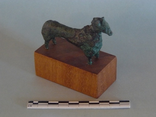 Bronzetto di cavallino caratterizzato dal muso corto e affusolato, la criniera è corta, gli occhi sono rilevati e le orecchie sono appuntite. Il corpo risulta allungato, mentre le gambe sono corte.